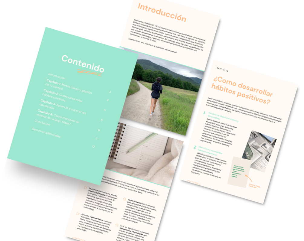 Descubre los secretos para mantener la motivación y la constancia en tu viaje hacia el éxito 🌟 con nuestro Ebook 'HACIA TUS METAS'. 🚀 Aprende estrategias probadas y herramientas prácticas para alcanzar tus objetivos más ambiciosos y cultivar la perseverancia para lograr tus sueños.